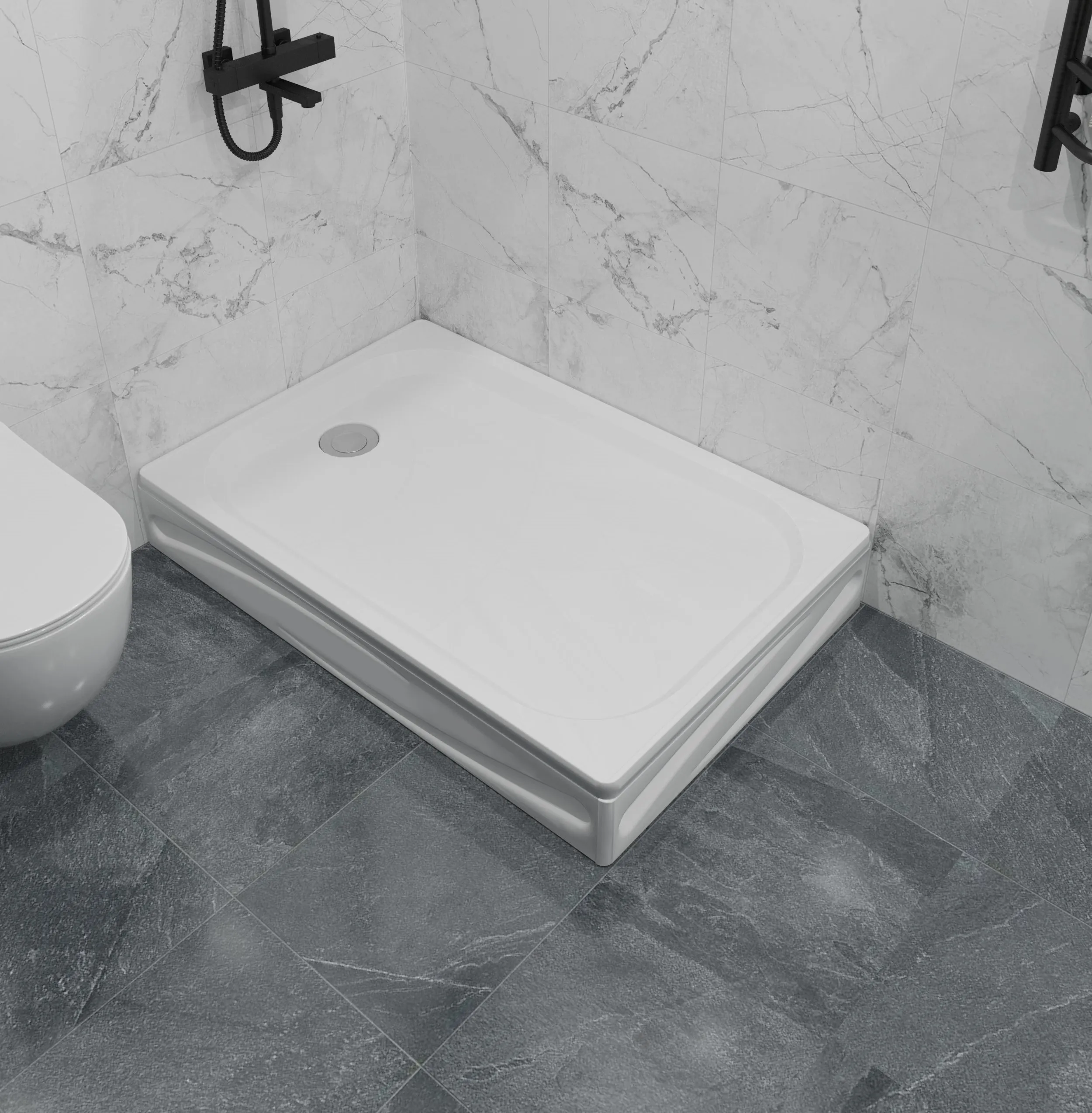 Акриловый прямоугольный душевой поддон Freya NEW – прекрасное решение для ванных комнат. Модель поможет стильно организовать пространство комнаты, не лишая его практичности. Небольшой уклон поддона в сторону слива и закругленные грани поддона позволяют эффективно стекать воде и предотвращать ее переливание через борт.Характеристики: