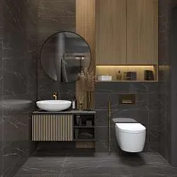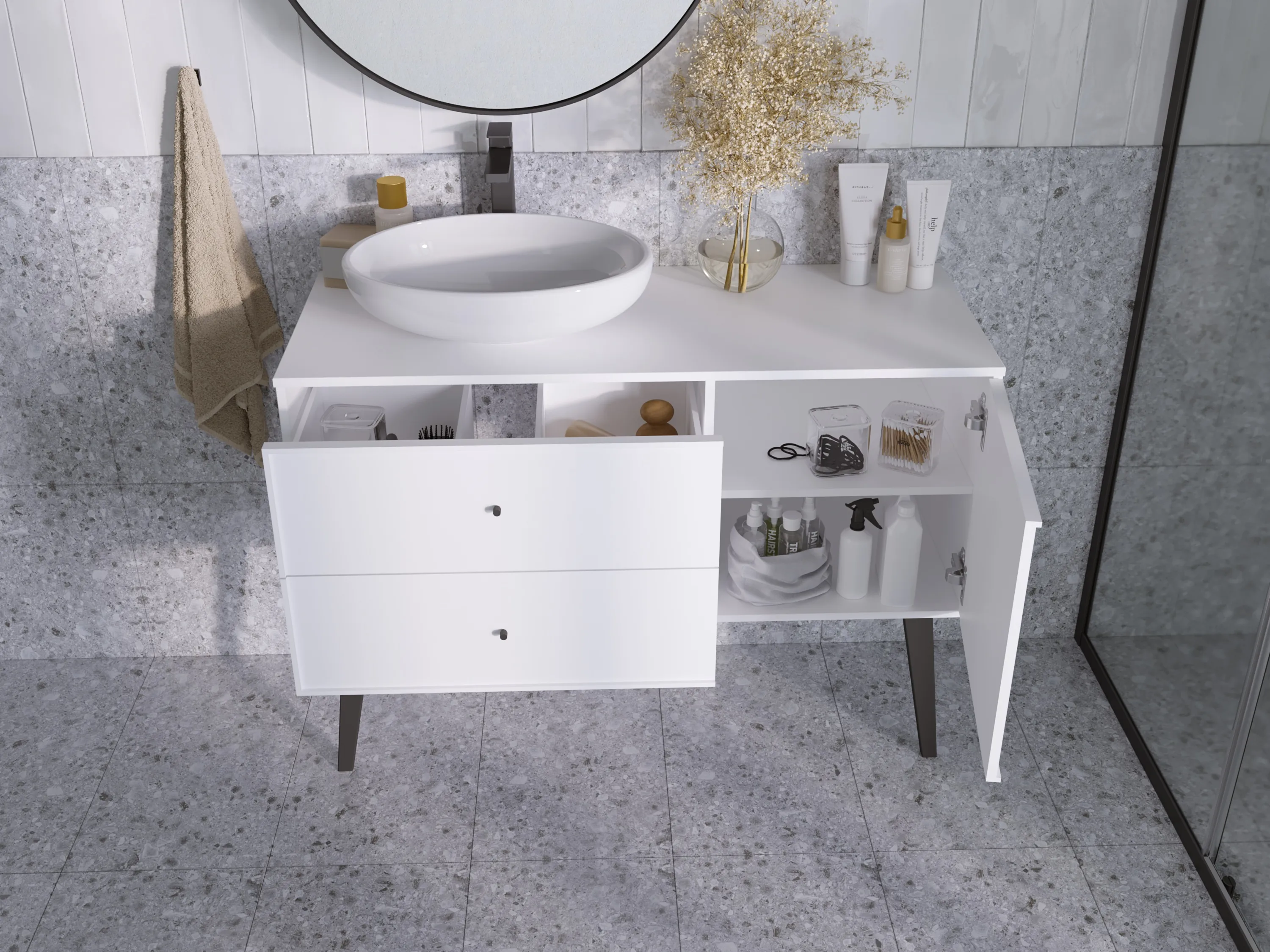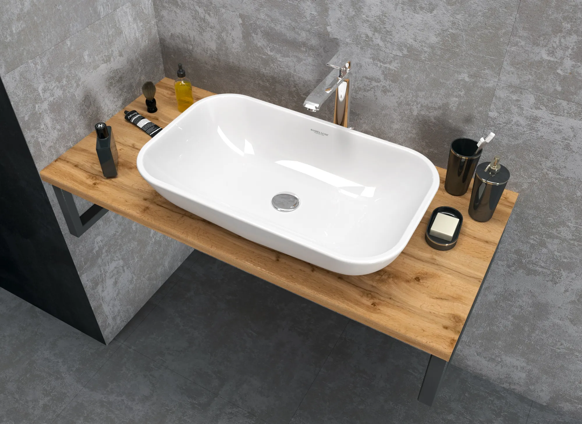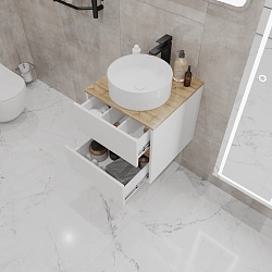Столешница из ЛДСП, которая создана для тех, кто предпочитает эстетику и тепло дерева каменным и металлическим фактурам. Лаконичная, стильная, выполненная из проверенных и качественных материалов, она своим примером доказывает, что для эффектного и стильного дизайна не нужно ничего лишнего. Столешница дополнена матовыми металлическими кронштейнами, которые могут использоваться в качестве рейлингов и делать окружающее пространство еще более практичным и функциональным. Это прекрасное решение для современной ванной комнаты любых размеров и цветов.Характеристики: