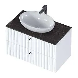 Столешница из керамогранита - это стильное, функциональное и долговечное решение, которое подойдет для ванных комнат, исполненных в самых разнообразных отделочных материалах. Такая универсальность, тем не менее, предполагает высокую декоративную и эстетическую ценность столешницы - она делает обстановку в ванной комнате по-настоящему стильной и соответствующей актуальным тенденциям в дизайне. Металлическое подстолье создает эффектный цветовой контраст, а также может использоваться в качестве практичных рейлингов для удобного размещения полотенец и банных халатов.Характеристики: