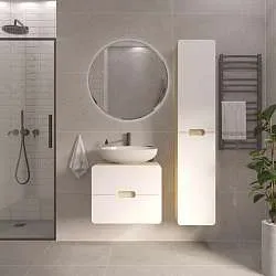 Подвесная тумба Delta — глоток свежести и легкости для ванной комнаты. Ручка в форме треугольного выпила добавляет загадочности модели.