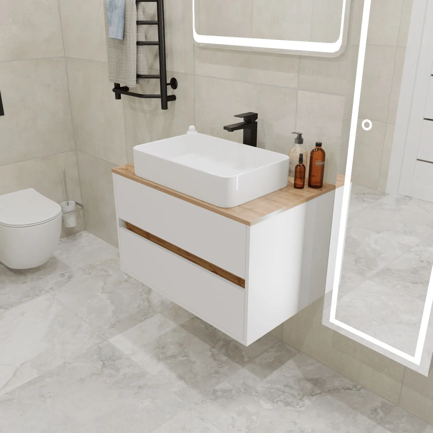 • Интегрированные ручки отвечают последним тенденциям в дизайне мебели для ванной комнаты.