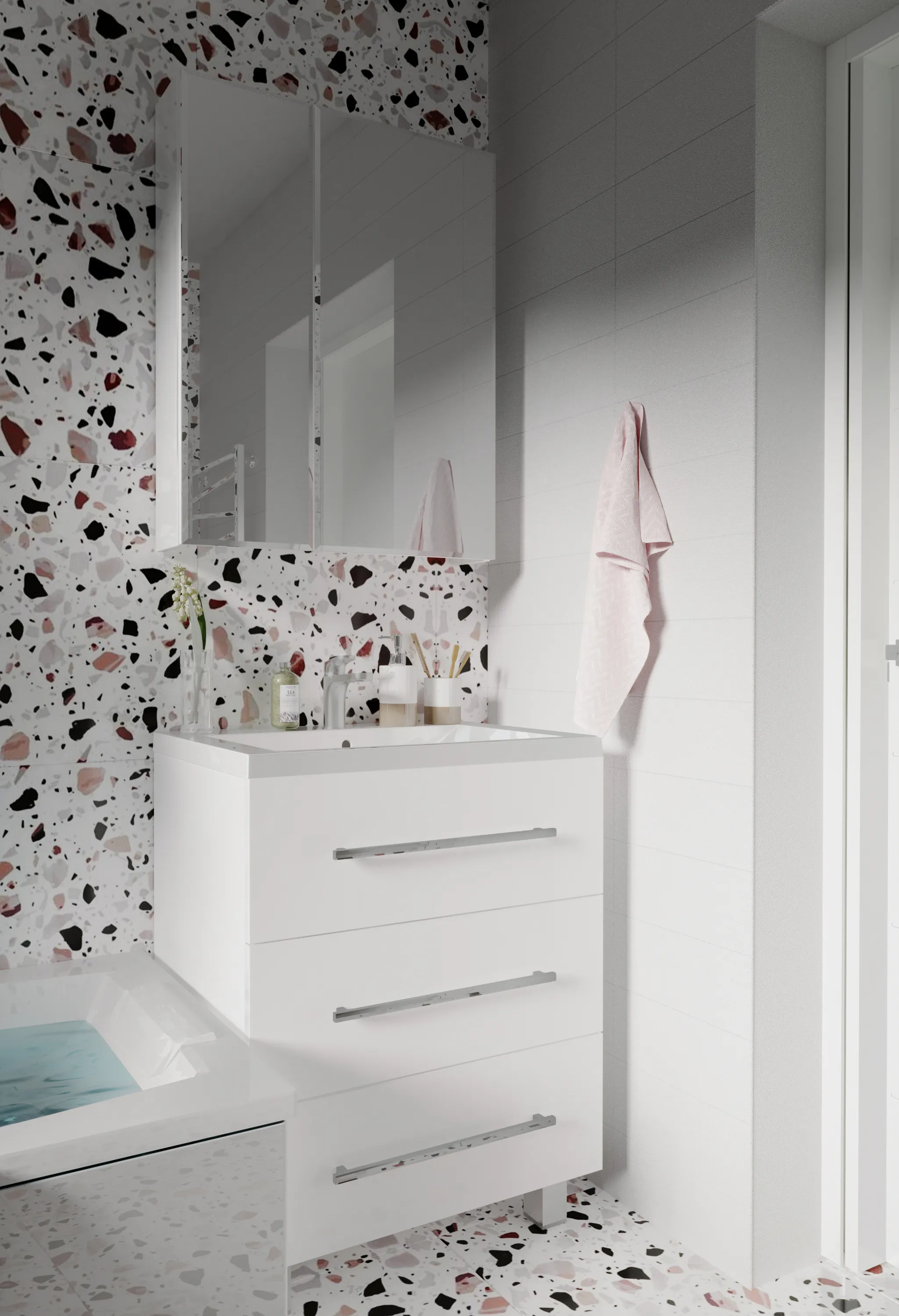 35 810 Р Тумба под раковину Соната 75Н 3в.я. белый глянец