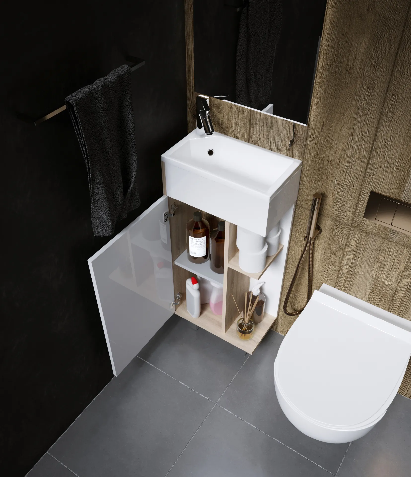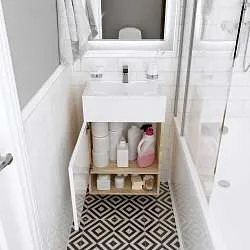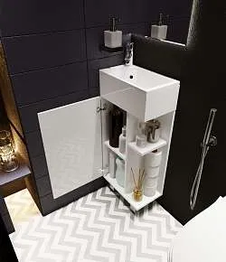 Тумба с раковиной, которая отличается невероятной компактностью и уникальными габаритами, которые не встретить ни у одной другой популярной на рынке модели - глубина тумбы составляет всего 22 см. Это отличное решение для небольших ванных комнат, в которых остро стоит вопрос экономии пространства. Несмотря на небольшие размеры тумба по-прежнему остается бескомпромиссно функциональной - она включает в себя две закрытые и две открытые полки разной высоты, которые позволяют закрыть вопрос хранения абсолютно любых вещей и предметов. Лаконичный дизайн с идеальной геометрией на сегодняшний день актуален как никогда ранее.Характеристики: