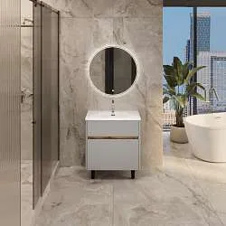 Компактная, доступная и при этом поистине уникальная тумба, глубина которой составляет всего 22 см. Эта эксклюзивная модель станет настоящей находкой для небольших ванных комнат, поскольку будет актуальна даже для очень ограниченных по площади пространств. При этом ее дизайн отличается современной лаконичностью и приверженностью простым и одновременно стильным геометрическим формам. Две закрытые внутренние полки разной высоты идеальны для размещения бытовой химии и любых других предметов различных габаритов.