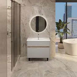 Тумба с раковиной в классическом и всегда уместном цвете, которая является миниатюрным произведением современного искусства оформления мебели для ванной комнаты. Легкая, компактная, лаконичная, она мгновенно сделает любое пространство более стильным, эффектным и функциональным. Ее корпус и фасад выполнены из МДФ и дополнены пленкой ПВХ для надежной защиты от воздействия влаги. Петли на дверце с доводчиками обеспечивают ее мягкое, бесшумное открывание и закрывание.Характеристики: